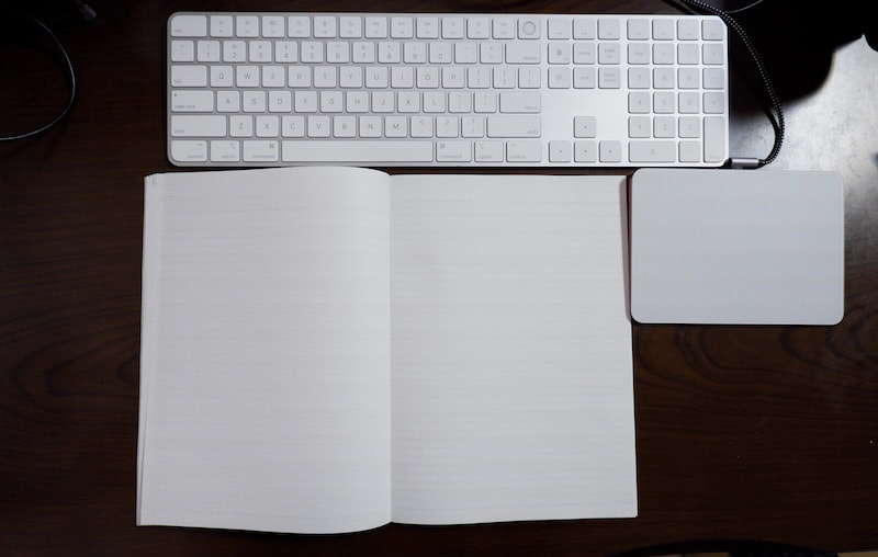 見た目やTouch IDも気に入っていましたが、特に気に入っていたのはコンパクトなところです。フルサイズなので横幅はあるのですが、このMagic Keyboardは奥行きがとてもコンパクトでした。12cmないぐらいです。私はパソコンを使いながら書き物をしたり、資料を参照することもあるので、キーボードの手前のスペースは広いほど良いのです。