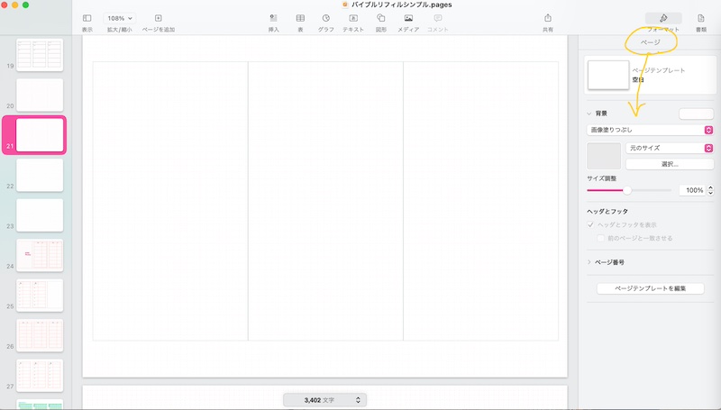 今回はMacのPagesで、A4用紙にバイブルサイズリフィルを作る方法を紹介します。